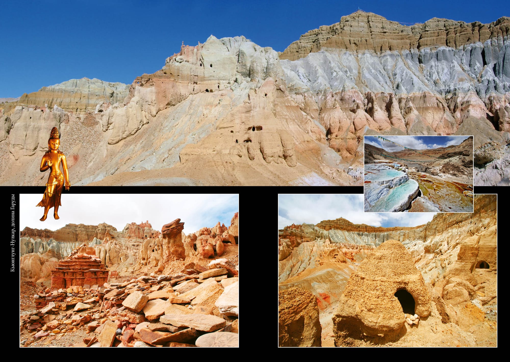 055 и 056 скомпоновать на развороте маленькие 1/8. Текст 055: Пещера в королевстве Гуге, Западный Тибет Текст 056: Типичная искусственная пещера, вырубленная в мягких осадочных породах, Цапаранг