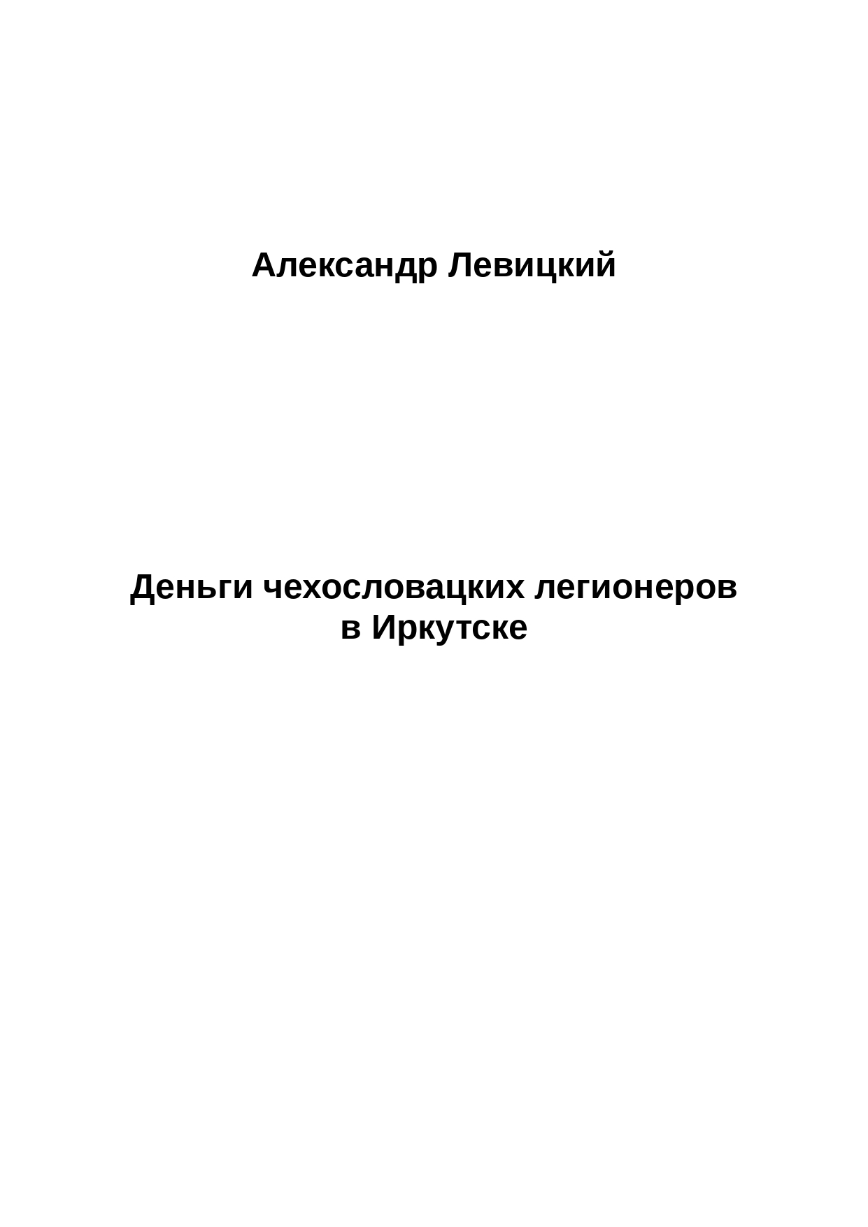 Александр Левицкий. Деньги чехословацких легионеров в Иркутске (PDF - 57 с.)