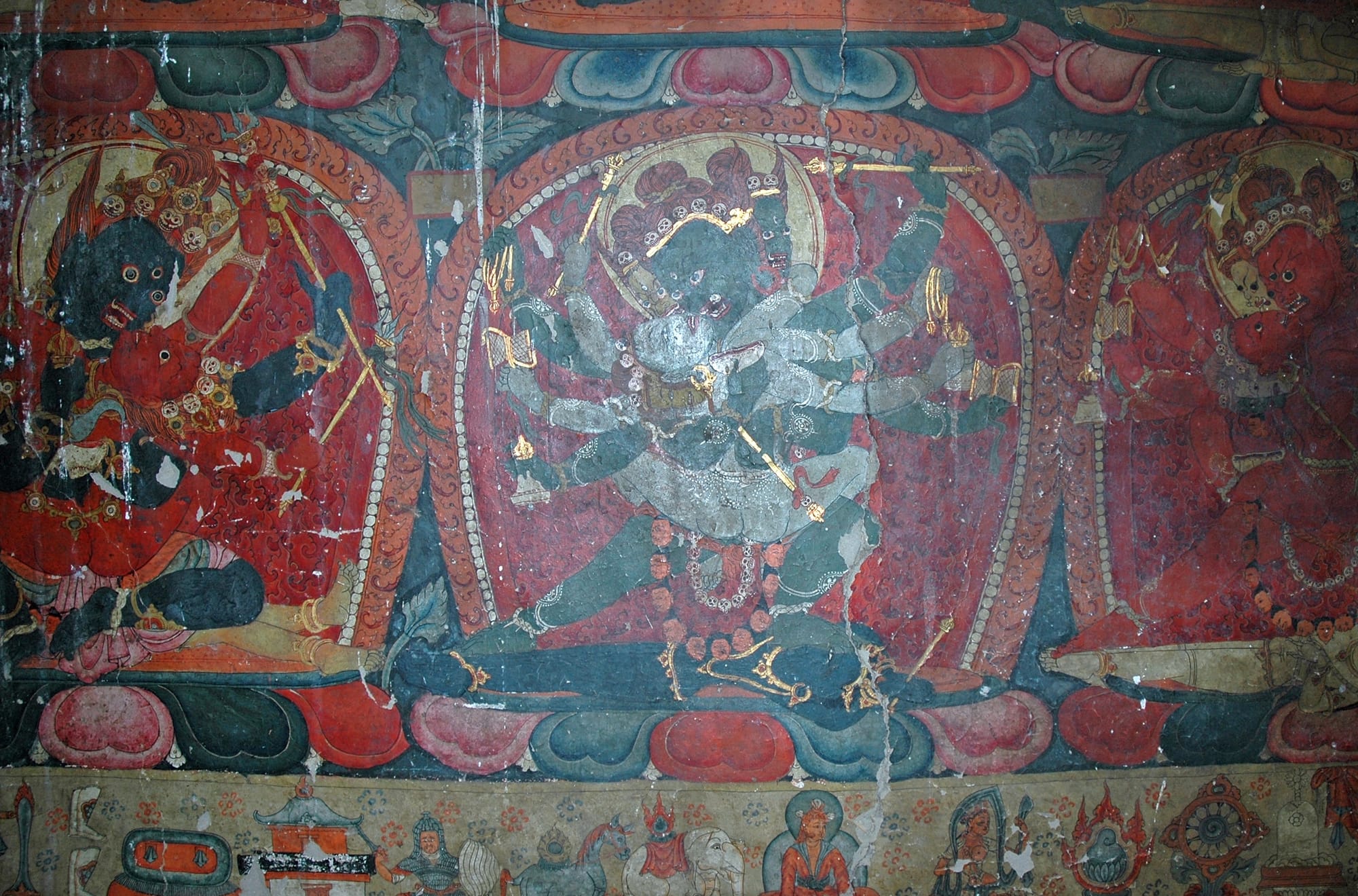 Западное тибетское королевство Гуге располагается на высоте в среднем 3570 м и образовалось в 866 г[2]. Правители Гуге были любителями роскоши и страстными покровителями искусств, они строили обширные храмовые комплексы, богато украшенные живописными фресками, буддийскими скульптурами, художественной резьбой по дереву. Приглашённые сюда кашмирские художники и ремесленники создали множество шедевров в течение пяти столетий процветания королевства. Кашмирская художественная школа IX века (школа Авантипура) оказала мощное воздействие на искусство Гуге (X–XI века). Многие из работ этих мастеров не пережили Китайскую культурную революцию, по оценке искусствоведов в Цапаранге и Тхолинге сохранилась лишь десятая часть былого великолепия, в основном это отдельные крупномасштабные фрески. О потерянных шедеврах можно судить на примере сохранившихся до наших дней образцов искусства в монастырях королевства Гуге – в знаменитых монастырях Того и Арчи в долине Спити в индийских Гималаях, которых не затронула волна разрушений Великой пролетарской культурной революции Мао Цзэдуна. Средневековое королевство Гуге располагалась на гималайской земле, которая в настоящее время поделена между Китаем, Индией и Пакистаном, ранее все эти земли были единым культурным пространством высокогорного участка Азии.