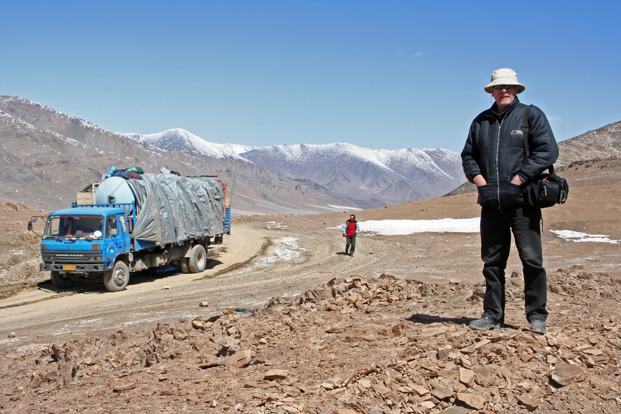 Не обошлось и без дорожных приключений. Из-за частых поломок и аварий грузовиков на горных дорогах иностранцам запрещается путешествовать автостопом, но никто не соблюдает этот запрет. На одном из перевалов на высоте 3600 м наш грузовик тоже попал в аварию. Встречный большегруз остановился после преодоления перевала на спуске, наш грузовик остановился на подъеме ниже него, водители вышли из кабин и отошли в сторону для разговора, и в этот момент большегруз без водителя самопроизвольно начал движение под горку. В этот момент я завязывал шнурки, сидя на переднем сиденье в кабине, когда увидел, катящийся с горы груженый грузовик и бегущего рядом с ним китайца, инстинктивно потянулся к ручке ручника, хотя и сидел в неподвижном грузовике. Удар в край кабины не был сильным, но пять часов в результате мы потеряли. Все обошлось незначительными повреждениями, повезло, что он вскоре врезался в нашу кабину, а не уехал в пропасть. Китайские водители не ругались, не спорили, может быть, они были знакомыми, достаточно сноровисто с помощью троса вытянули ушедший бампер на одной машине и выправили кабину другого грузовика, так, что даже стало возможным открывать боковую дверку. Потом пришлось по просьбе китайского водителя возвращаться в посёлок Куди, контрольный пункт, которого мы уже благополучно недавно уже прошли, чтобы переписать на ноутбук полицейских цифровые фотографии результата столкновения с наших фотоаппаратов. Наше повторное появление на КПП и суета, связанная с оформлением документов об аварии, к счастью для нас всё обошлось без повторной проверки наших документов.