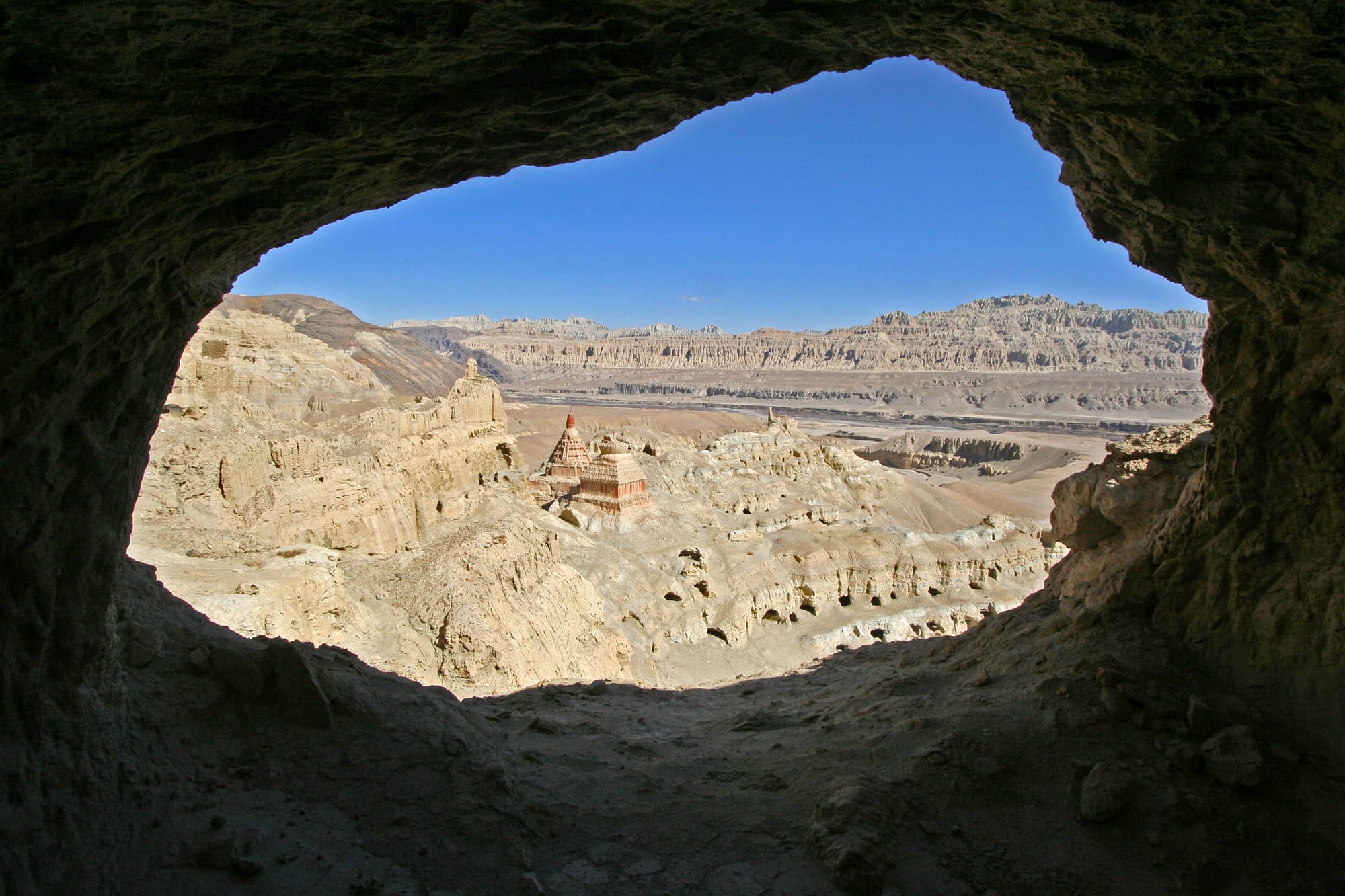 Лёссовые глины занимают здесь колоссальную площадь в несколько сотен квадратных километров, образуя местами уникальные природные формы рельефа в виде глиняных столбов, изваяний, извилистых лабиринтов и каньонов. Высота этих отложений превышает 450–500 м. спрессованные отложения песчаника, глины и гальки, образовались в четвертичный период на основе донных отложений рек и озер. За миллионы лет вода преобразила эти отложения до неузнаваемости, прорезав в них глубокие каньоны и изваяв сказочные утёсы. Для пейзажной фотографии рельеф действительно замечательный, чудеса природы проявляются здесь самым причудливым образом. Жаль, только что цвет серый, в Монголии, в Заалтайской Гоби встречаются подобные обнажения, именуемыми монголами – цав, меньшего масштаба, но ярко-бурого цвета и смотрятся они эффектнее. Вообще серый цвет свойственен Тибету – пыли здесь больше, чем в монгольской Гоби. Природный пейзаж в Тибете украшают буддийские храмы, священные ступы на вершинах холмов и вырубленные в отвесных утесах многочисленные пещерные поселения. В ряде пещер сохранились цветные фрески с настенной буддийской живописью.