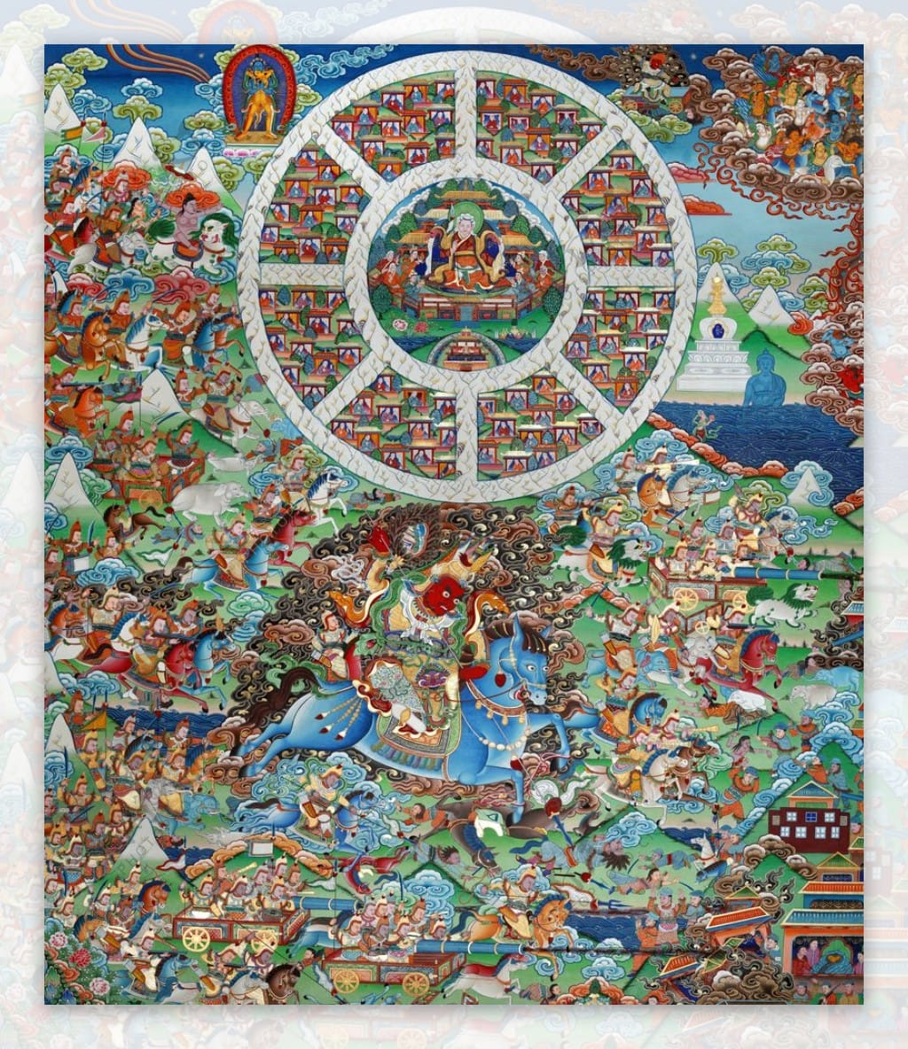 Легенда о Шамбале – неразрывно связана с Калачакра-тантрой и значима в буддизме из-за своей связи с будущим. Предсказано, что воинство Шамбалы выиграет последнее сражение на Земле с силами зла и невежества, после чего на землю из чистой страны Тушита[5] придет Будда грядущего – Майтрея (санскр. – «Тот, кто есть любовь») по всей земле распространится учение Калачакры. Наступит счастливая эра буддийского учения – Золотой век всеобщего процветания и блаженства. Сюжет о грядущем сражении сил добра и зла получил широкое распространение, таким образом, Шамбала стала достоянием всего человечества. Миф о земле всеобщего счастья и Владыках Шамбалы – «Грозных Держателей Колеса» оказался востребованным в разное время совершенно разными людьми по национальности и своей культуре: сначала буддийскими верующими, потом русскими староверами, позднее известными теософами, мистиками разных школ и направлений, искателями приключений, различными авантюристами и романтиками-мечтателями. Традиция мифа, несмотря на кажущуюся разнородность людей, соприкасавшихся с Шамбалой, не прерывалась более тысячелетия. Культ Майтреи имеет древнюю традицию и особенно развит на буддийских территориях Центральной Азии – в Тибете и в Монголии, где в его честь отлито множество великолепных бронзовых статуй, которые в настоящее время украшают коллекции музеев и действующие буддийские храмы.