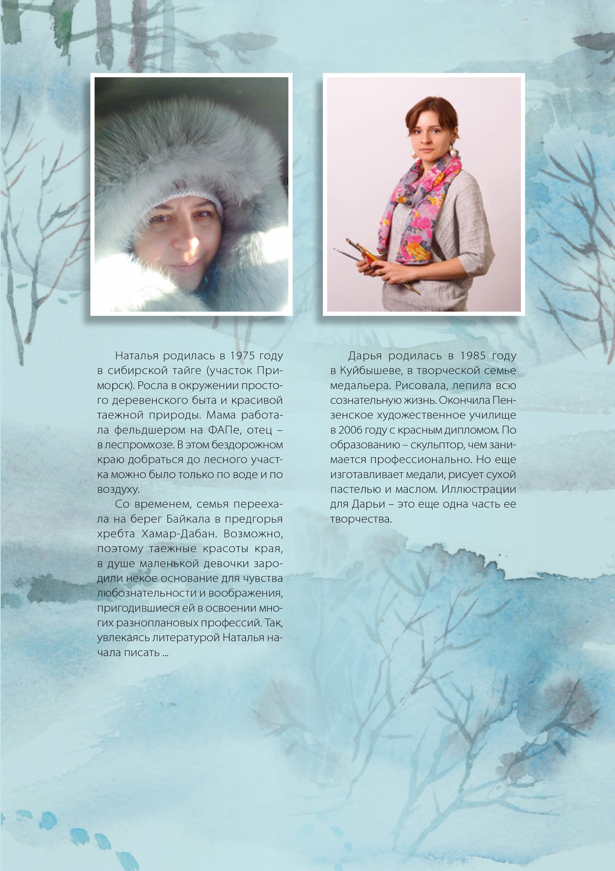 С Натальей Николаевной мы общаемся, с традиционным чаепитием для гостей, в гостиной её усадьбы Тюрюминых в пос Листвянка. И хотя разговор начинался с вопроса о книгах для детей, очень скоро он сместился к шаманским корням её творчества (её род восходит к северобайкальскому роду Бушиных, в котором переплелись эвенки, буряты, алтайцы, русские... И в роду были лекари-шаманы. "Мы не уезжали никуда, - рассказывает Наталья, - тут жили в Сибири. В одну ветвь влились еще уральские яицкие казаки, которых Екатерина II выслала сюда после восстания Пугачева (это мои троюродные братья и сестра). Их потомок - мой дядя Валерий Иванович Попов (ныне почивший уже) очень любил тайгу и нам родственникам не разрешал даже ягоду там собирать, когда был директором Байкальского заповедника в Танхое и нас-детей студентов (братья и сестры) увозил в лес и там на 3-4 дня оставлял, чтобы мы созерцали красоту тайги и изучали следы зверей и потом забирал, его сын - учился на охотоведа, потом в аспирантуру уехал в Красноярск... ". Может быть поэтому, или потому что всю жизнь Наталья провела на берегах Байкала на исконно шаманской земле среди природы, она научилась тонко чувствовать энергетику первозданной природы, испытала на себе в тайге и на спортивных сплавах неуправляемую мощь её стихий, и стала разговаривать с духами-хозяивами этой шаманской земли. Она прекрасный рассказчик, способная часами рассказывать увлекательные житейские истории, наполняя их содержание яркими запоминающими образами, как в сказках, так, что заслушавшись, забываешь о горячем чае и он остывает. Писать сочинения и фантазировать ей нравилось с детства. Эту её способность к творческому началу отмечали в студенческие годы профессора-преподователи. Закономерным итогом стала писательская деятельность. Первые свои книги для детей она проиллюстрировала своим авторскими рисунками. В 2002 г. вместе со своим мужем Олегом Тюрюминым они приобрели пару камчатских ездовых собак и стали проводниками-каюрами в путешествиях по льду Байкала. В настоящее время усадьба Тюрюминых превратилась в крупный досуговый центр для детей и взрослых, где наряду с собачьими упряжками (количество ездовых собак увеличилось дооколо 80), появилась конюшня и кузница.