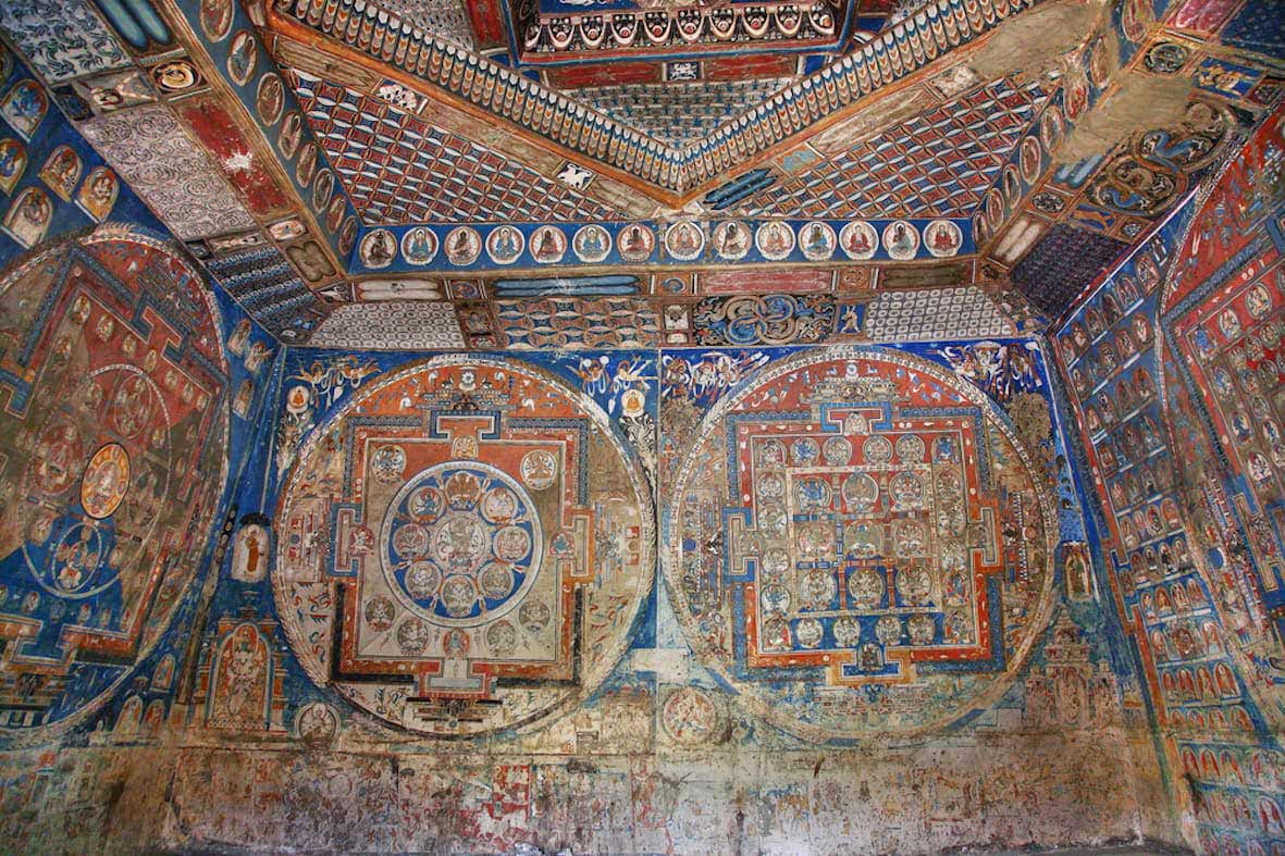 Если и существуют контактные точки для перехода между мирами, то пещера мандал в гротовом комплексе Дунгкар в Западном Тибете – самое подходящее место для пространственно-временного портала в Шамбалу. Только надо вспомнить как им пользоваться. Ничего подобного нет больше ни в одной пещере Тибета и гималайских горах. Всё пространство пещеры пронизано магией геометрического узора многоцветных мандал – они занимают полностью все четыре стены и даже нарисованы на потолке, если в этом месте правильно прозвучат звуки буддийской мантры, то сознание медитирующего отправляется в нирвану (Шамбалу).
