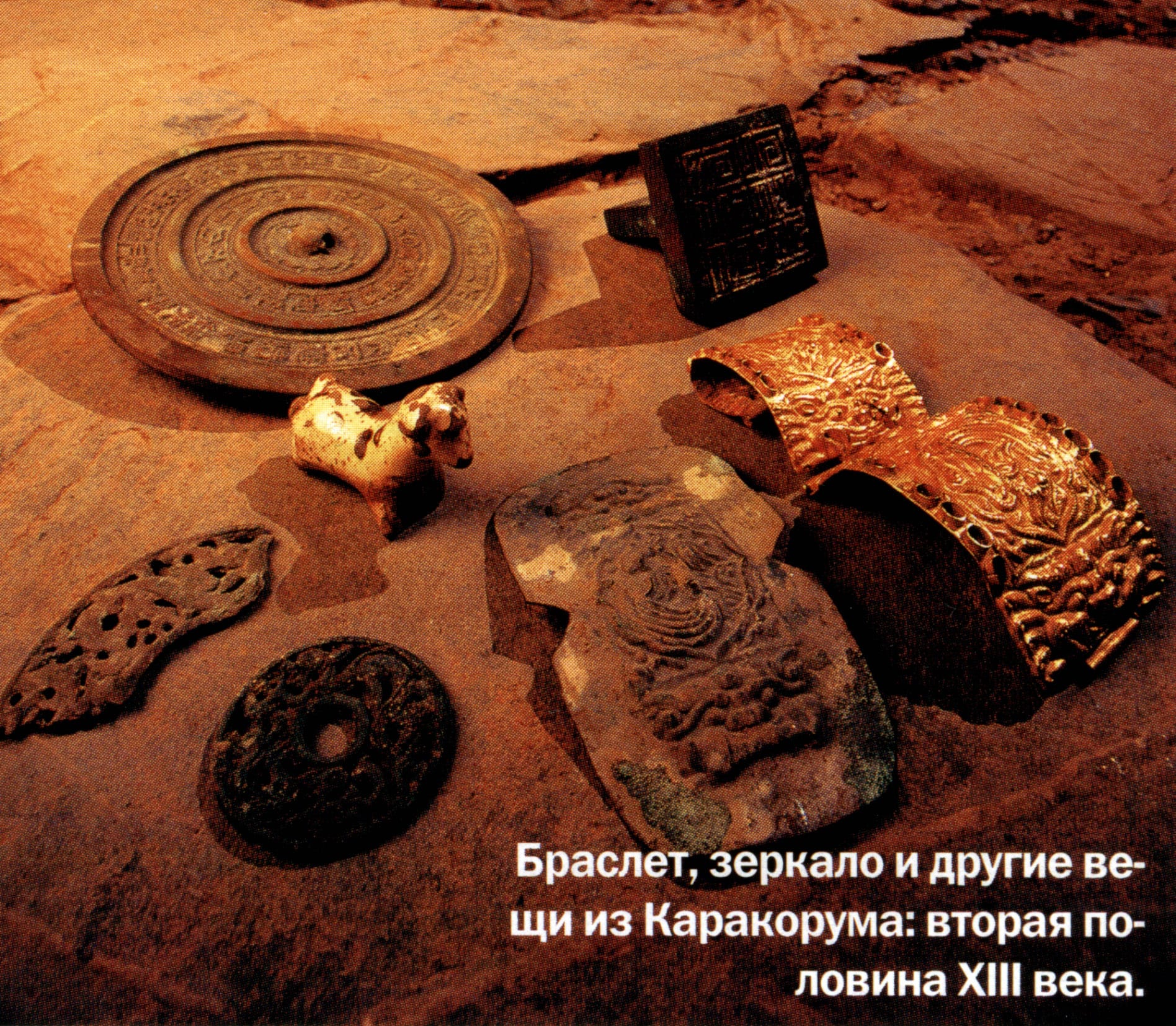 Из летописей Рашид-ад-дина известно, что в Каракоруме во время правления хана Угэдэя казнохранилище было переполнено динарами и дирхемами, и Великий хан не скупился раздавать эти монеты горожанам. Археологи рассчитывали найти подобные монеты, однако за все время раскопок не обнаружено не только ни одного дирхема, но и ни одной из известных в Золотой Орде монеты, что очень странно, учитывая описываемые торговые связи Каракорума со всем миром. Преобладающее большинство монет, найденных к настоящему времени на территории современной Монголии, – китайские, никаких других монет, судя по всему, на территории Монголии в денежном обращении не было. Только на одном из многочисленных сайтов, посвященных коллекциям монет, удалось найти ссылку о найденной в Монголии единственной золотоордынской монете с арабскими надписями.