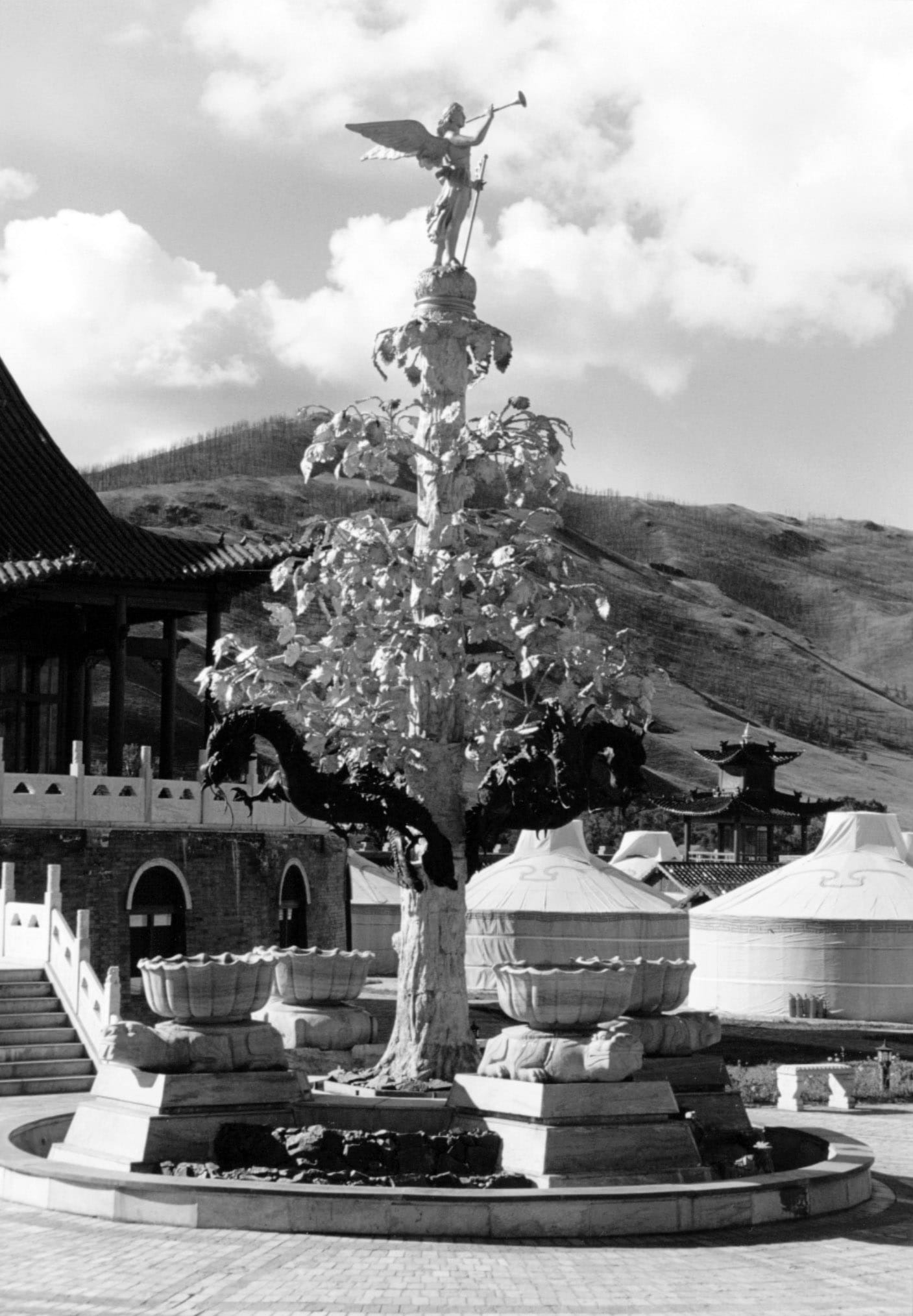 По свидетельству знаменитых европейских путешественников Плано Карпини (1246 г.), Вильгельма Рубрука (1254 г.), Марко Поло (1274 г.), Каракорум, того времени, производил незабываемое впечатление своей сказочной архитектурой и богатством, он являлся центром производства тонкого ценного текстиля и предметов роскоши, особо отмечалось великолепие ханского дворца Тумэн-Амгалан и знаменитое серебряное дерево с чудесным фонтаном, установленное по одним источникам перед дворцом, по другим – внутри дворца, посередине огромного тронного зала. Серебряное дерево обвивали четыре металлические змеи с позолоченными головами. Из одной пасти лилось вино, из другой – очищенное молоко, из третьей – напиток меда, из четвертой – рисовое пиво.