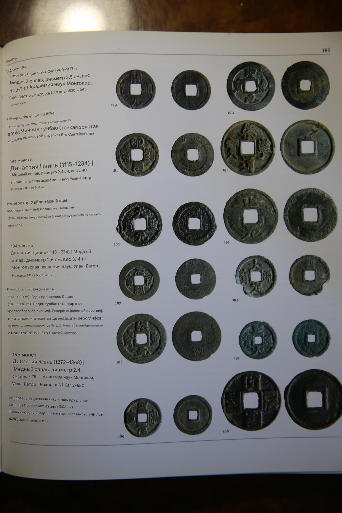 Во время раскопок Хархорина было обнаружено много китайских монет, но ни одной (!) монгольской. большая часть монет относится к значительно более ранней эпохе, нежели время правления Чингисхана. Археологи указывают, что «в денежном обращении города в основном были монеты разных династий, чеканки до 1190 г.».