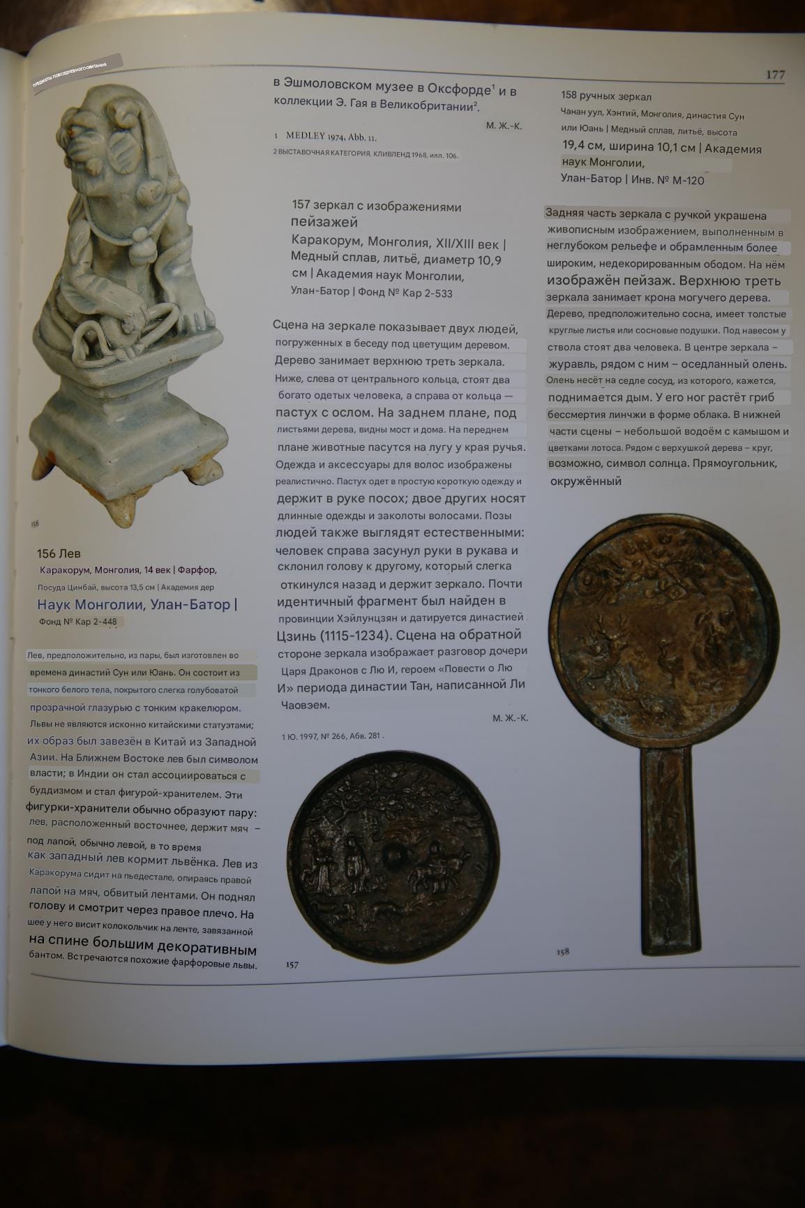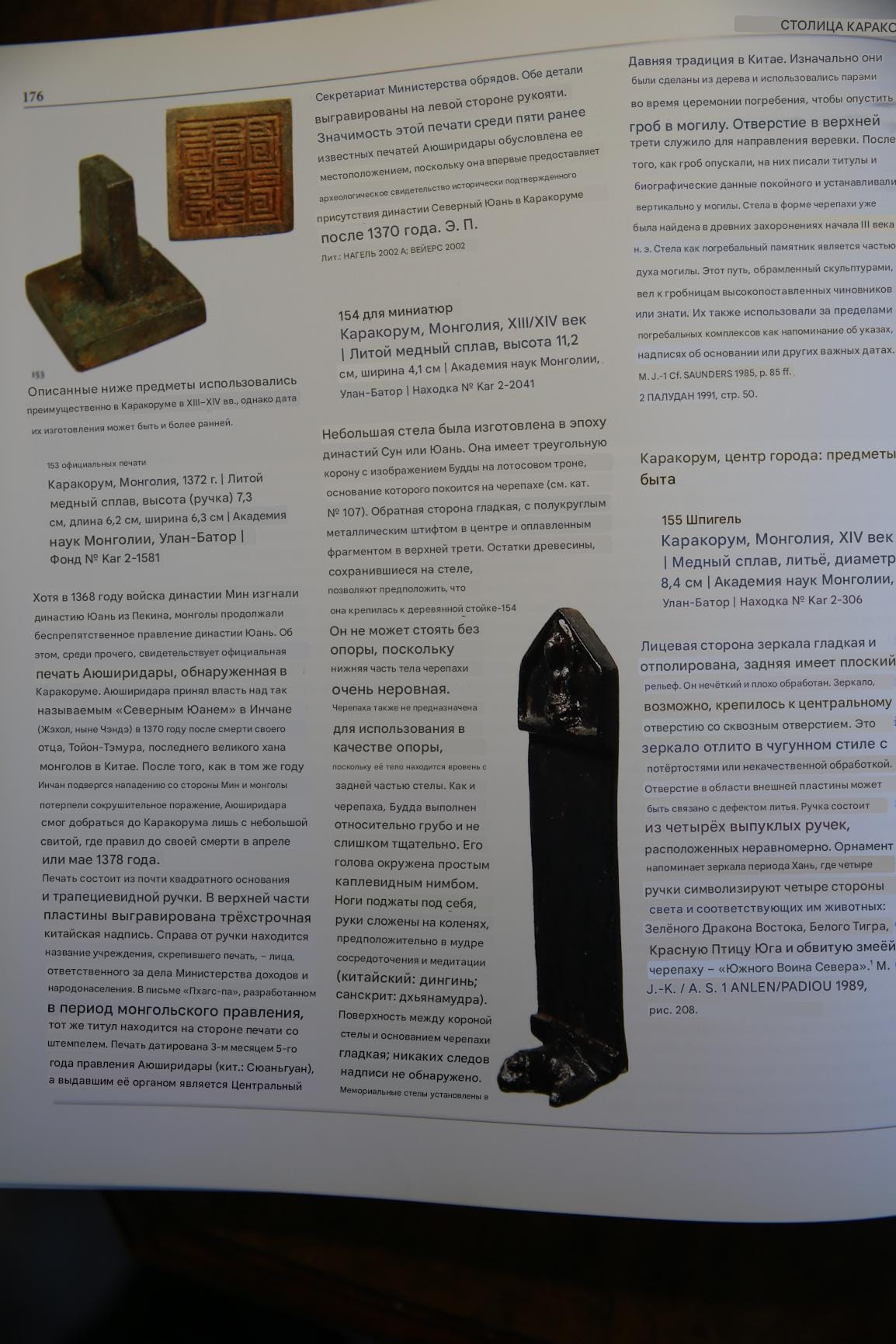 Hirmer. DSc Hingis Khan und seine Erben, Das Weltreich der Mongolen, Katalog zur Ausstellung. Мюнхен, 2005 г. – с. 432. Каталог выставки: Художественно-выставочный зал Федеративной Республики Германии, Бонн, 16 июня - 25 сентября 2005 г.; Государственный музей этнологии, Мюнхен, 26 октября 2005 г. - 29 января 2006 г. С многочисленными цветными иллюстрациями об археологических находках при раскопках в монгольском Хархорине.