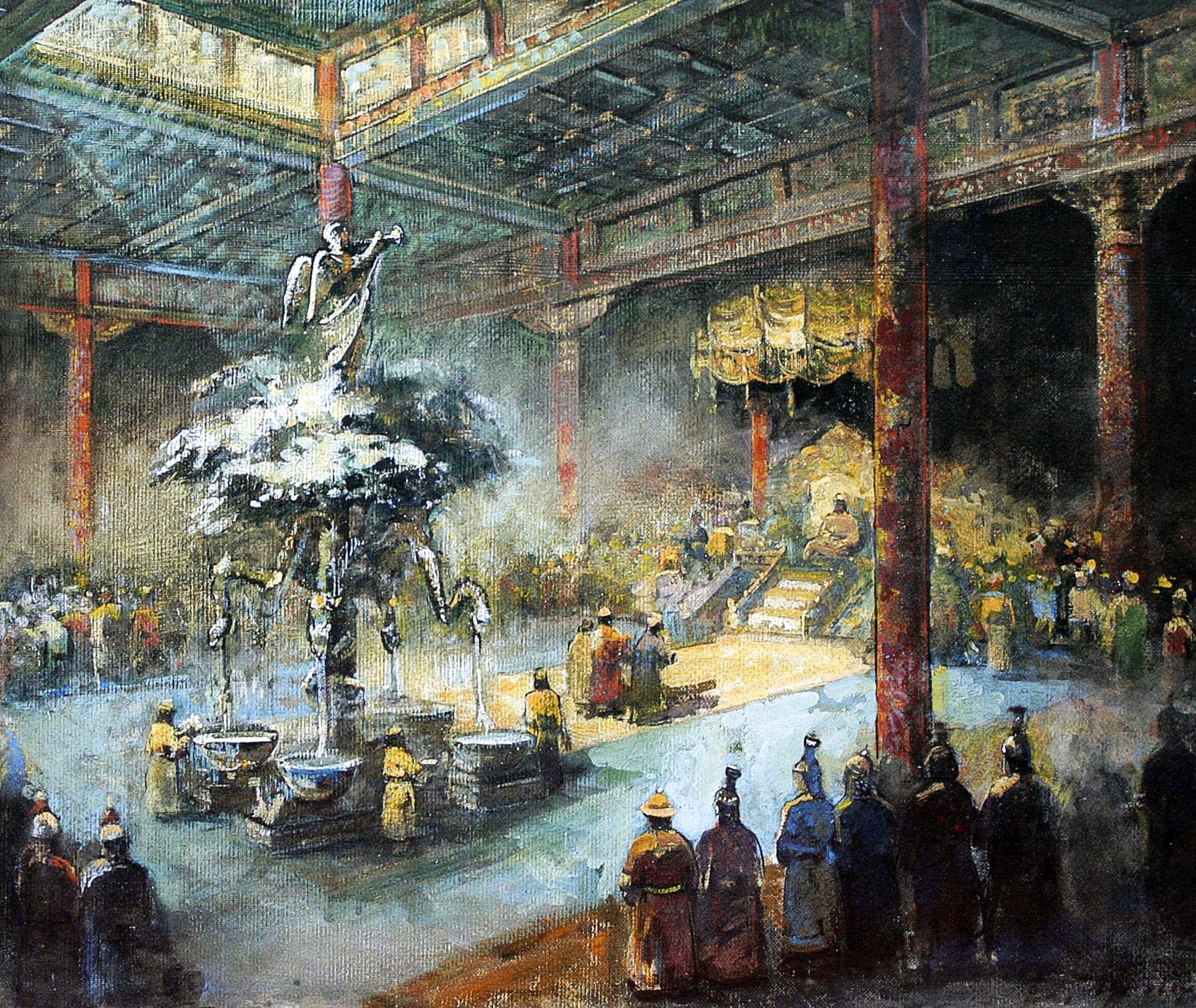 По свидетельству знаменитых европейских путешественников Плано Карпини (1246 г.), Вильгельма Рубрука (1254 г.), Марко Поло (1274 г.), Каракорум, того времени, производил незабываемое впечатление своей сказочной архитектурой и богатством, он являлся центром производства тонкого ценного текстиля и предметов роскоши, особо отмечалось великолепие ханского дворца Тумэн-Амгалан и знаменитое серебряное дерево с чудесным фонтаном, установленное по одним источникам перед дворцом, по другим – внутри дворца, посередине огромного тронного зала. Серебряное дерево обвивали четыре металлические змеи с позолоченными головами. Из одной пасти лилось вино, из другой – очищенное молоко, из третьей – напиток меда, из четвертой – рисовое пиво.