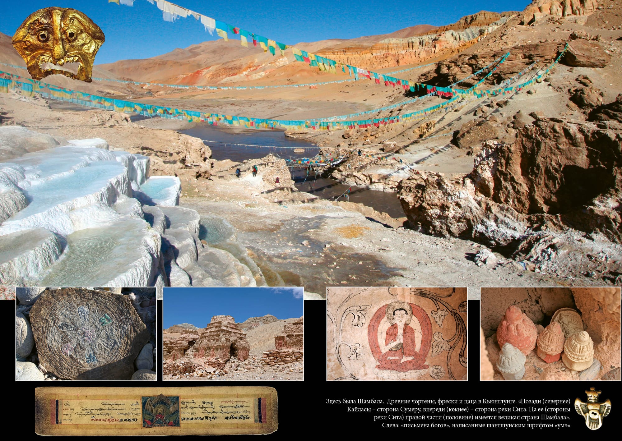 2. Тибетские и бонские источники «gZer‑mig» и «gZi‑brjid» (бонские тексты на «языке богов»). Называют землю Олмолунгринг (тождественную Шамбале) расположенной вдоль реки Сита к юго‑западу от горы Тисе (Кайлас). Исток Ситы связывается с «пастью слона» у подножия Кайласа – это тибетское наименование истока Сатледжа (Лангчен Канбаб).
