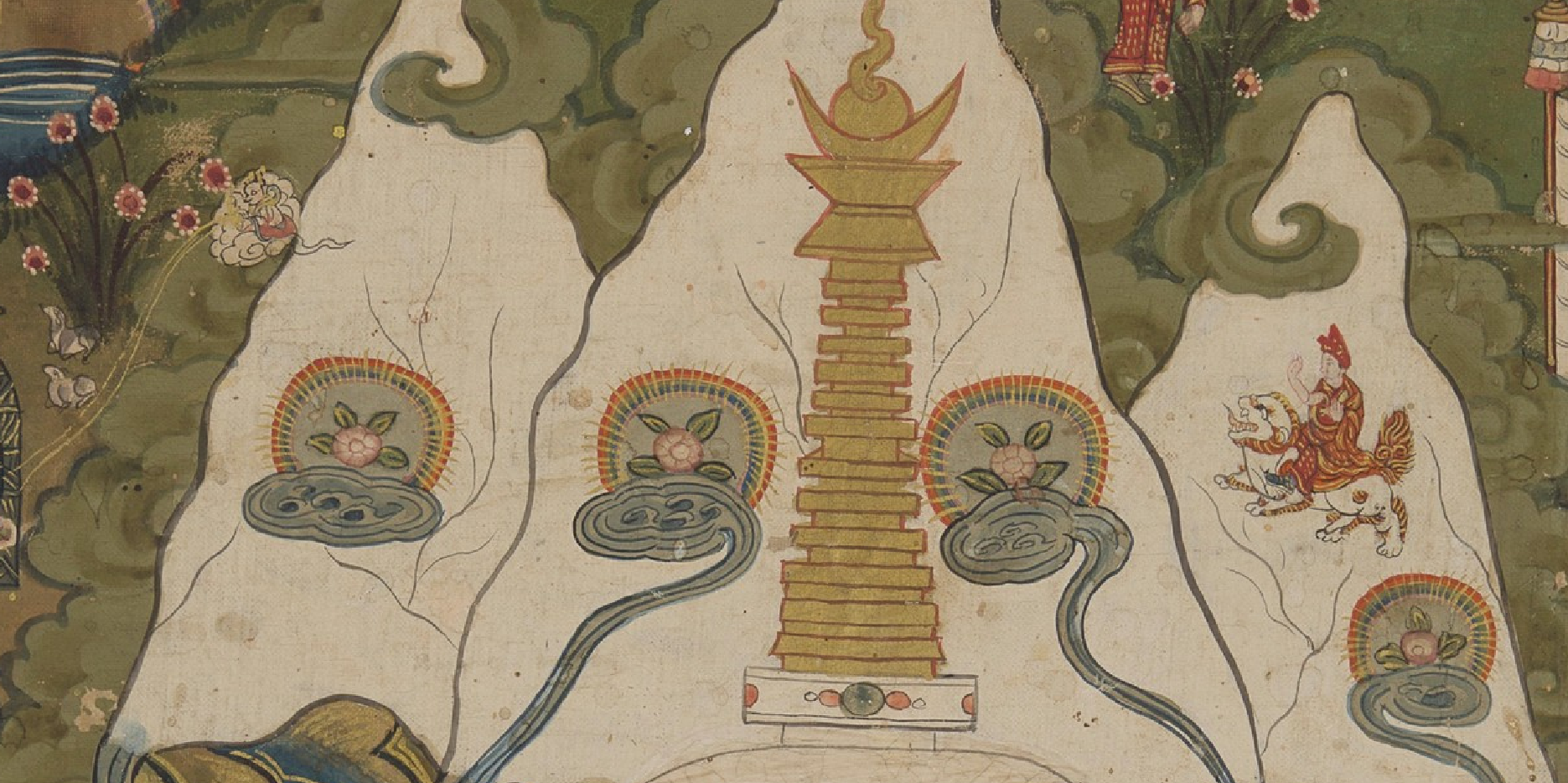 Изображают исток Ситы как бьющий из «глотки слона» у Кайласа – прямое соответствие тибетскому названию Сатледжа Лангчен Зангбо («Река слона»).