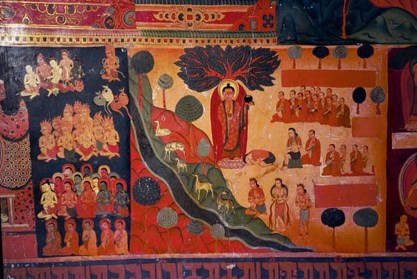 Лхамо (гневная женская бодхисатва) или местными горными духами-сабдагами. В тибетском буддизме есть божество Палдэн Лхамо (Palden Lhamo), которая является одной из главных защитниц учения. Она иногда изображается с темно-синей кожей и имеет функции синкретической богини-матери.