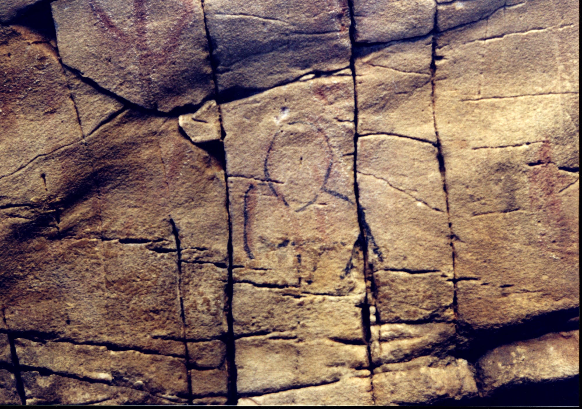 Рисунок алмаски в пещере Хойд-Цэнхэрийн, расположенной на территории Манхан сомона Ховд аймака.