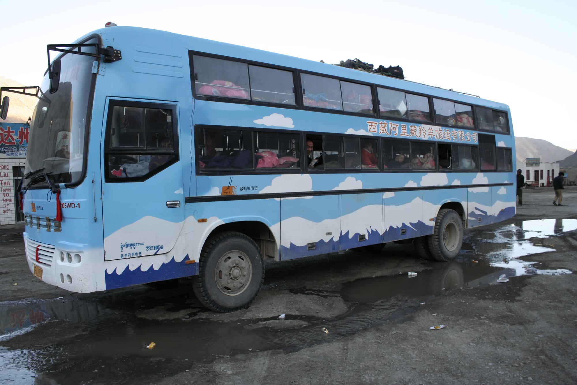 На этом автобусе с спальными местами мы возвращались из Тибета и проехали за 1,5 дня 1060 км