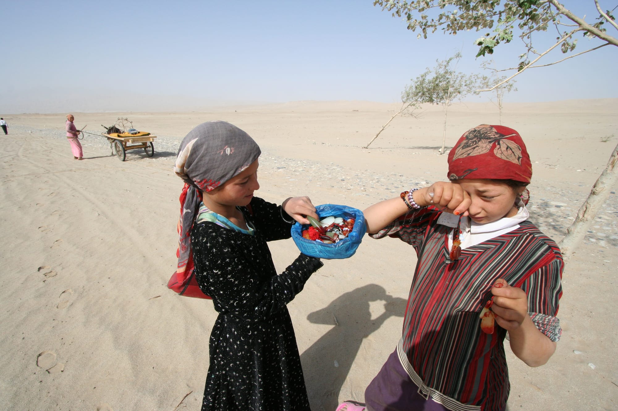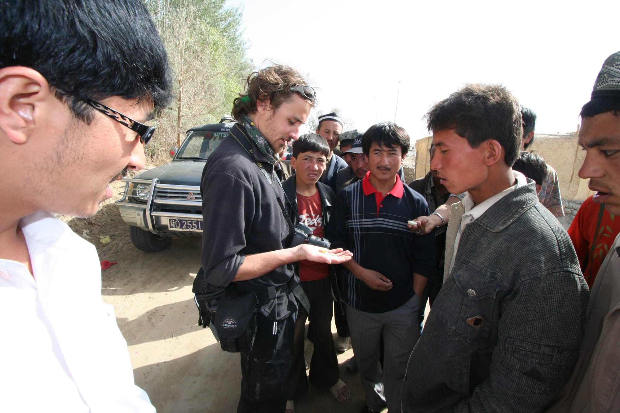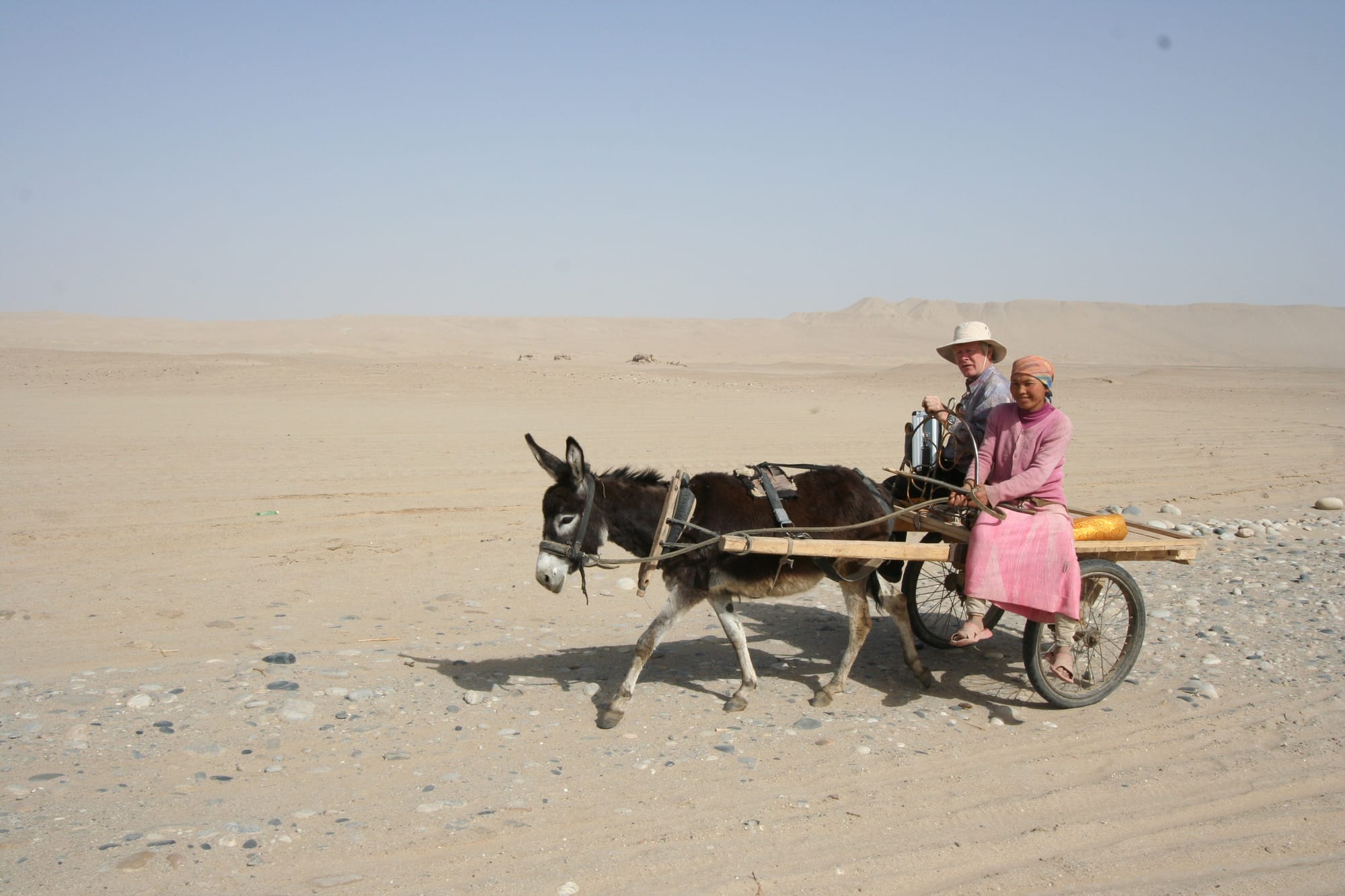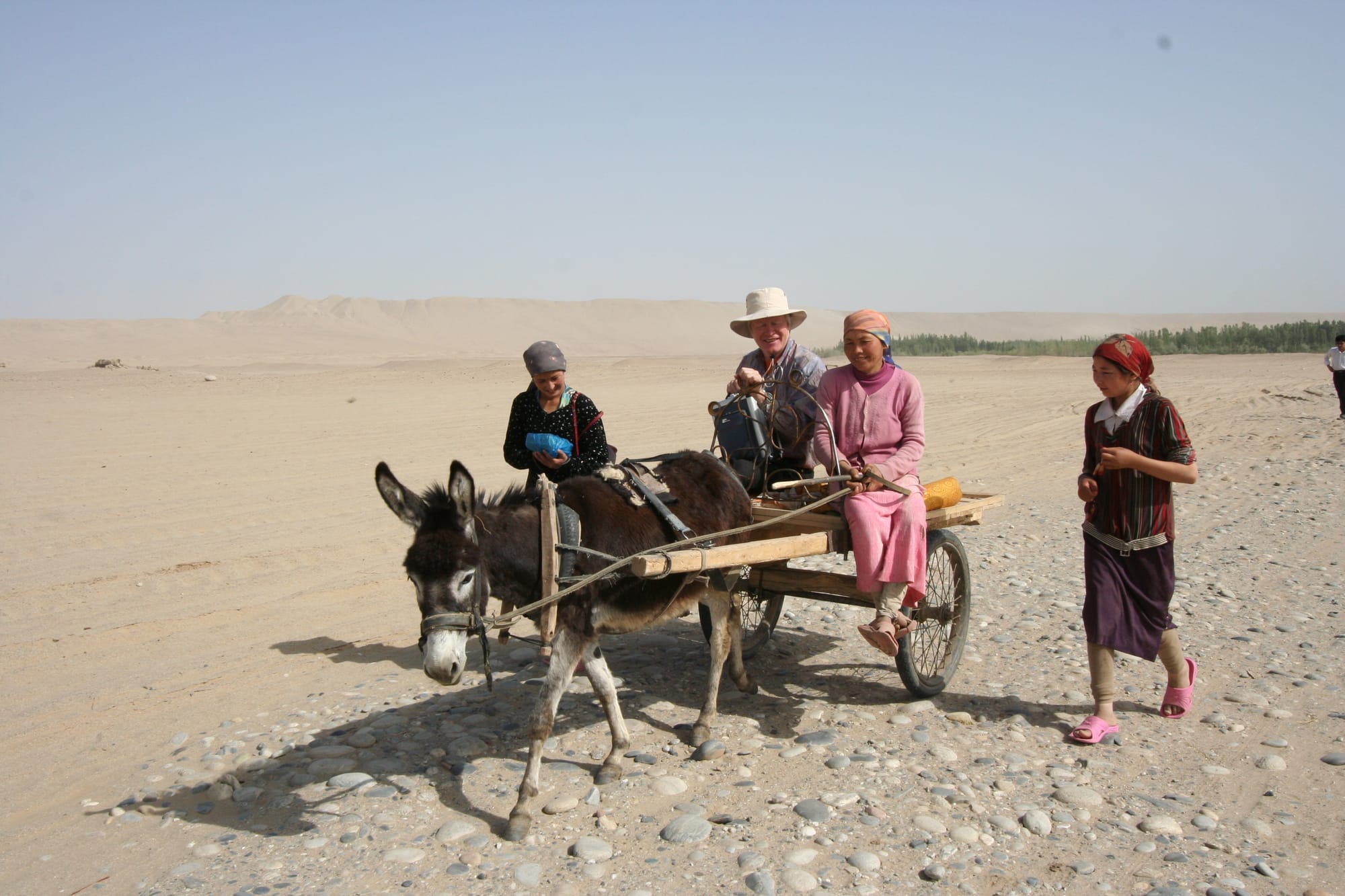 В Кашгаре, воспользовавшись рекомендациями путеводителя Lonly Planet мы нашли «Караван кафе», где обслуживающий персонал говорил по-английски, и через них наняли машину для поездки через пустыню Такла-Макан, с традиционно не работающем спидометром. Мы решаем проехать по некогда знаменитым городам на Шелковом торговом пути. В прошлом эта мощная торговая артерия (она насчитывает 3500 лет) связывала караванными тропами Китай с Европой. Греческий историк Геродот со ссылкой на более раннего автора Аристея рассказывает об огромном маршруте от восточных берегов Азовского моря в Центральную Азию. Во второй половине I тысячелетия до н.э. складывается система торговых путей, связывающих Китай с Центральной и Западной Азией. Возникновение связей между Ближним Востоком, Центральной Азией и Китаем, восходят ко II тысячелетию до н.э., этому способствовала разработка полудрагоценных камней – лазурита в горах Бадахшана и нефрита в верхнем течении Яркенд в районе Хотана. Письменные и археологические источники свидетельствуют о существовании торгового Нефритового пути, по которому из Бадахшана в Иран, Месопотамию, Египет, Сирию и Анатолию доставляли лазурит, высокого ценившийся на Древнем Востоке. Затем по этому же пути стали перевозить шелк и другие товары. Знаменитый Шелковый путь огибал пустыню Такла-Макан по двум маршрутам, северный путь пролегал через современный Турфан, южный – через Хотан.