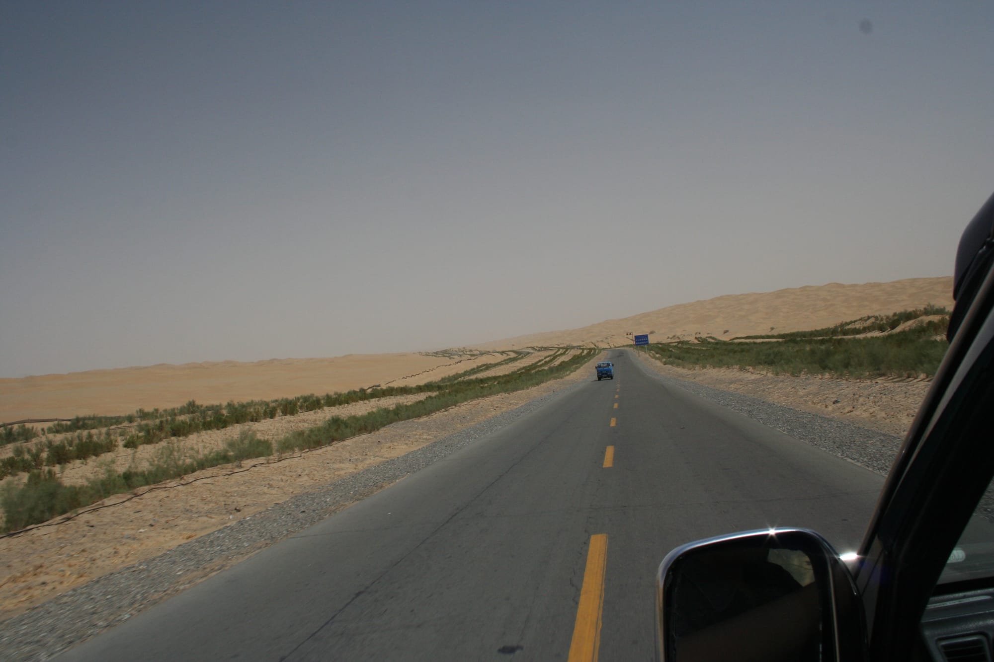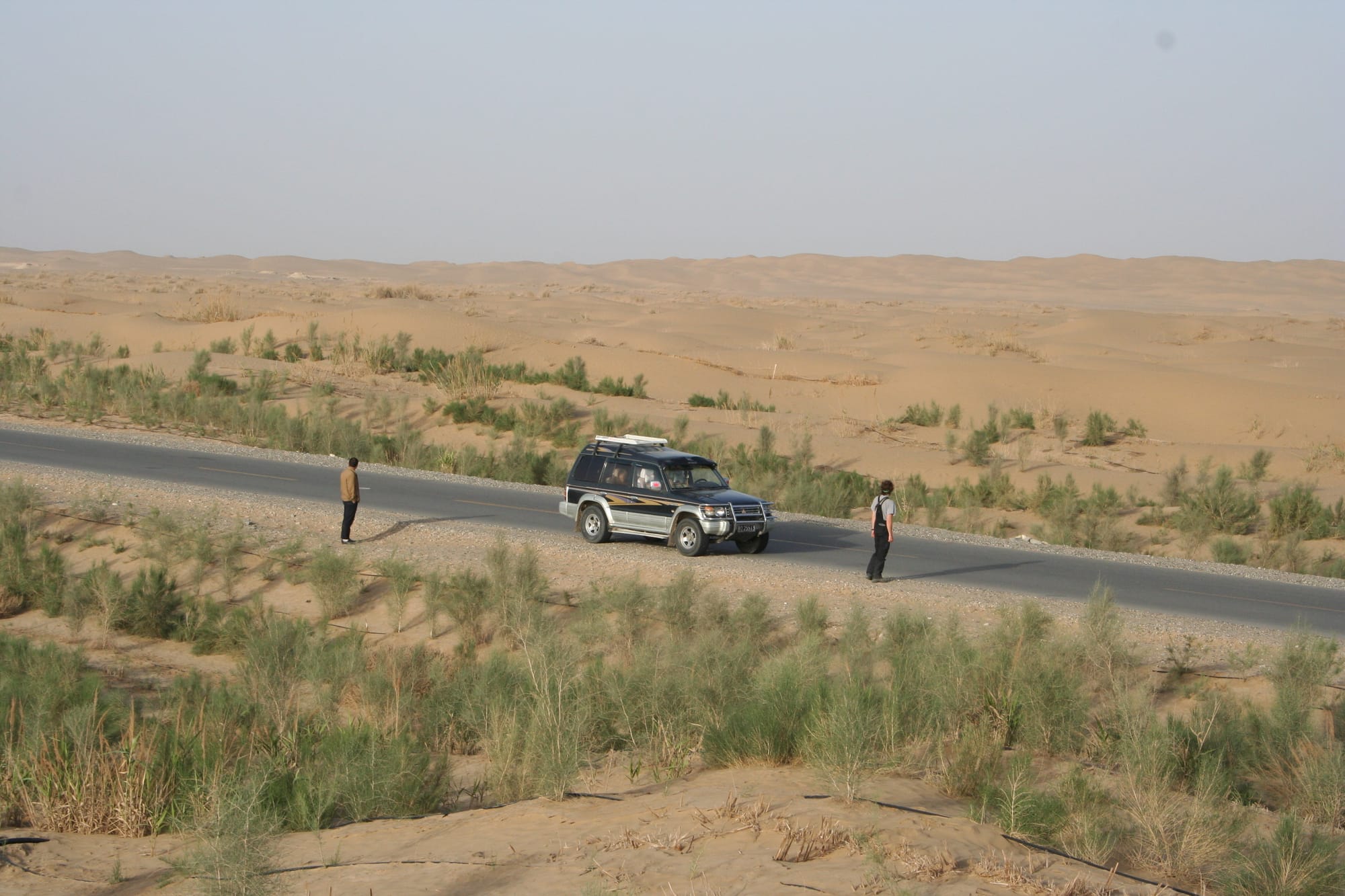 Китай за 3 года осуществил озеленение автодороги через северо-западную пустыню Такла-Макан. Капиталовложения в создание «зеленого коридора» протяженностью 436 км составили 220 млн. юаней (около $26,5 млн.). Для поддержания жизни деревьев используются подземные воды. В 2001 году китайские ученые в экспериментальном порядке высадили на 31-километровом участке автодороги деревья. 95% растений прижились в суровых условиях одной из крупнейших мировых пустынь. В 2004 г. началась массовая высадка кустов тамариска вдоль дороги в пустыне. Особенно красивы они в пору цветения с фиолетовыми цветами на кустах.