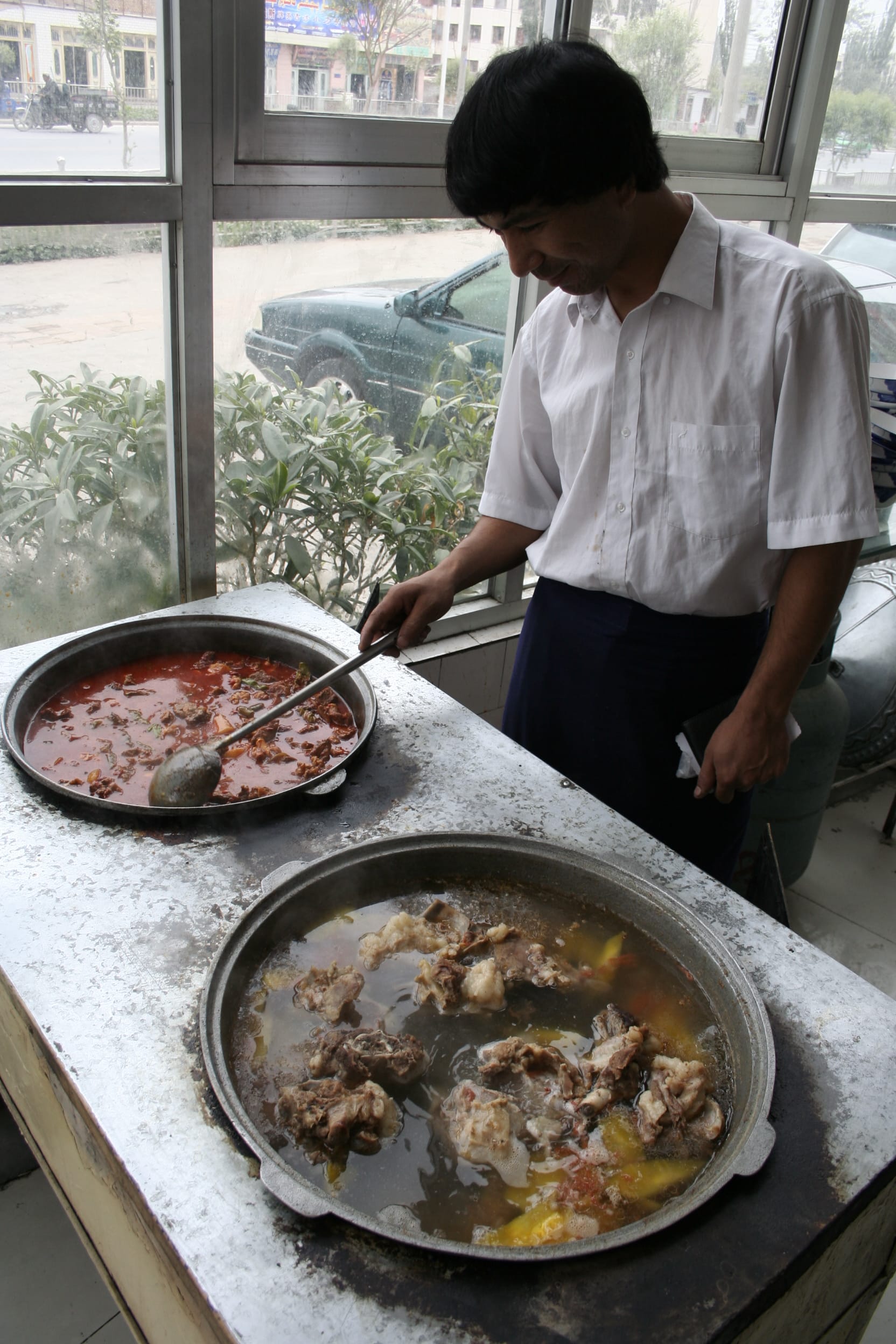 Для дороги характерна непрерывная изматывающая гребенка, надо иметь железную выносливость, чтобы в кузове грузовика выдерживать эту изнурительную тряску. Обычно в кабине грузовика едут водитель и его сменщик. Мы трясёмся с рюкзакми, стоя в кузове. Грузовик идет непрерывно с одной остановкой на обед, где-нибудь в одной из поселков. Максимальная скорость около 50 км в час. Еще полдня мы безуспешно ждем попутный транспорт в Барге – это совсем маленький поселок. Коротаем время на обочине в безделье и в китайской забегаловке, периодически заказывая чай с цампой – прожаренной ячменной мукой, которую тибетцы добавляют до момента кипячения в чай с молоком. Строгого рецепта цампы не существует. Её составные части – мука, жир, молоко, жидкость – могут быть любыми. В нашем случае – главным было, что напиток горячий, а его приготовление с применением традиционной большой ступы колоритно для фотографирования.