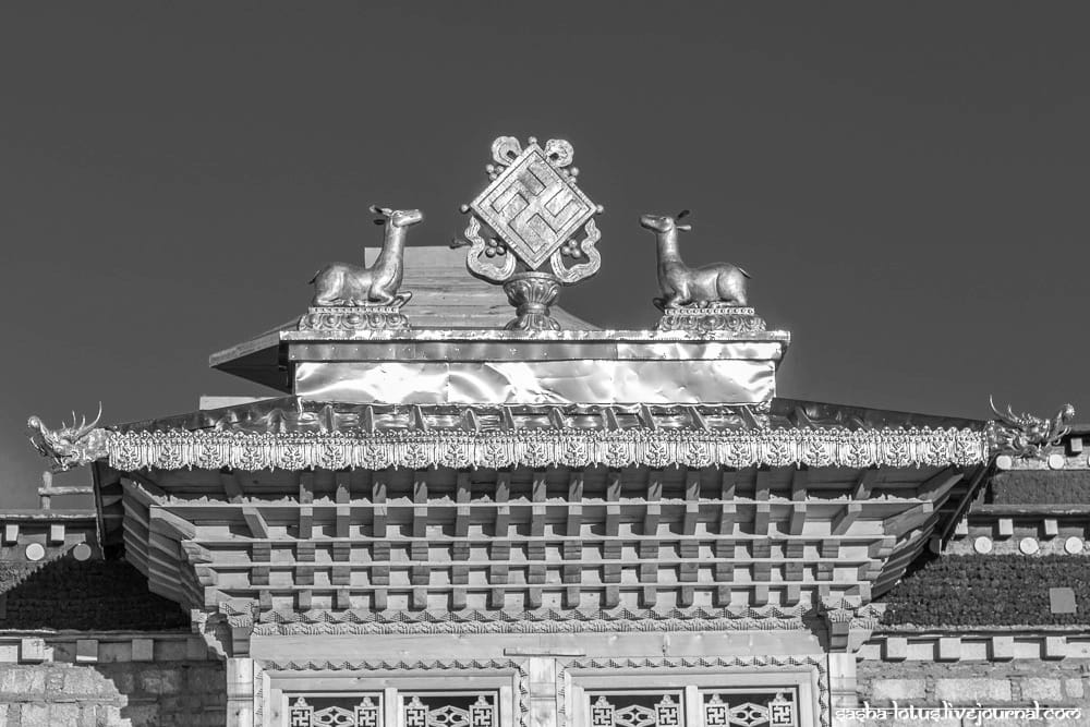«В традиции бон, – пишет Рамачандра Рао, – свастика «вращается» справа налево, то есть является левосторонней, в отличие от правосторонней свастики буддизма, символизирующей процесс «вращения» слева направо. Эта деталь объясняется характерной чертой бон: делать многие вещи в обратном порядке (обходить ступы по левой стороне, вращать молитвенные барабаны в обратную сторону и произносить мантры наоборот, например, «Ом Мани Падме Хум» как «мух-ем-пад-ни-мо»[6].