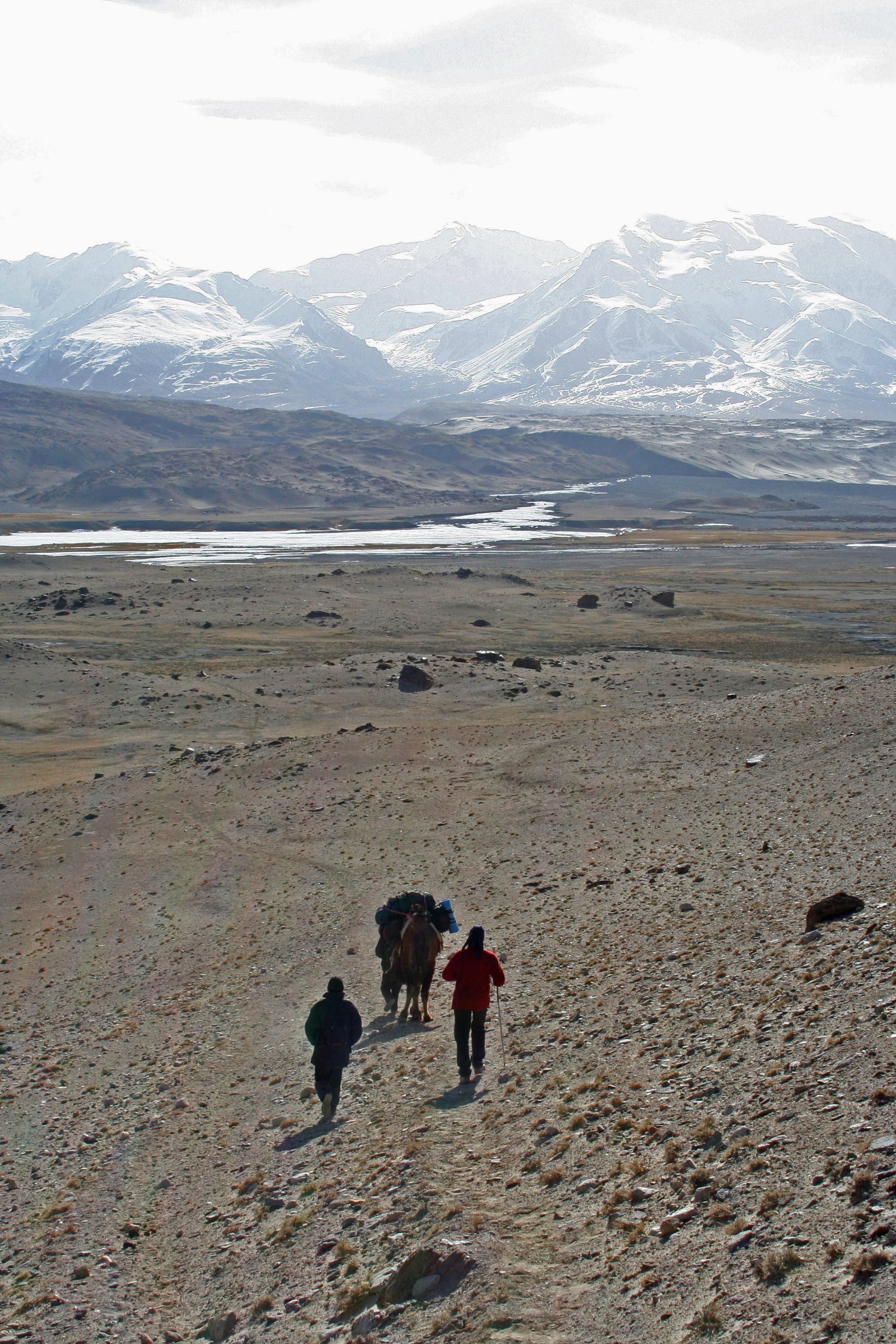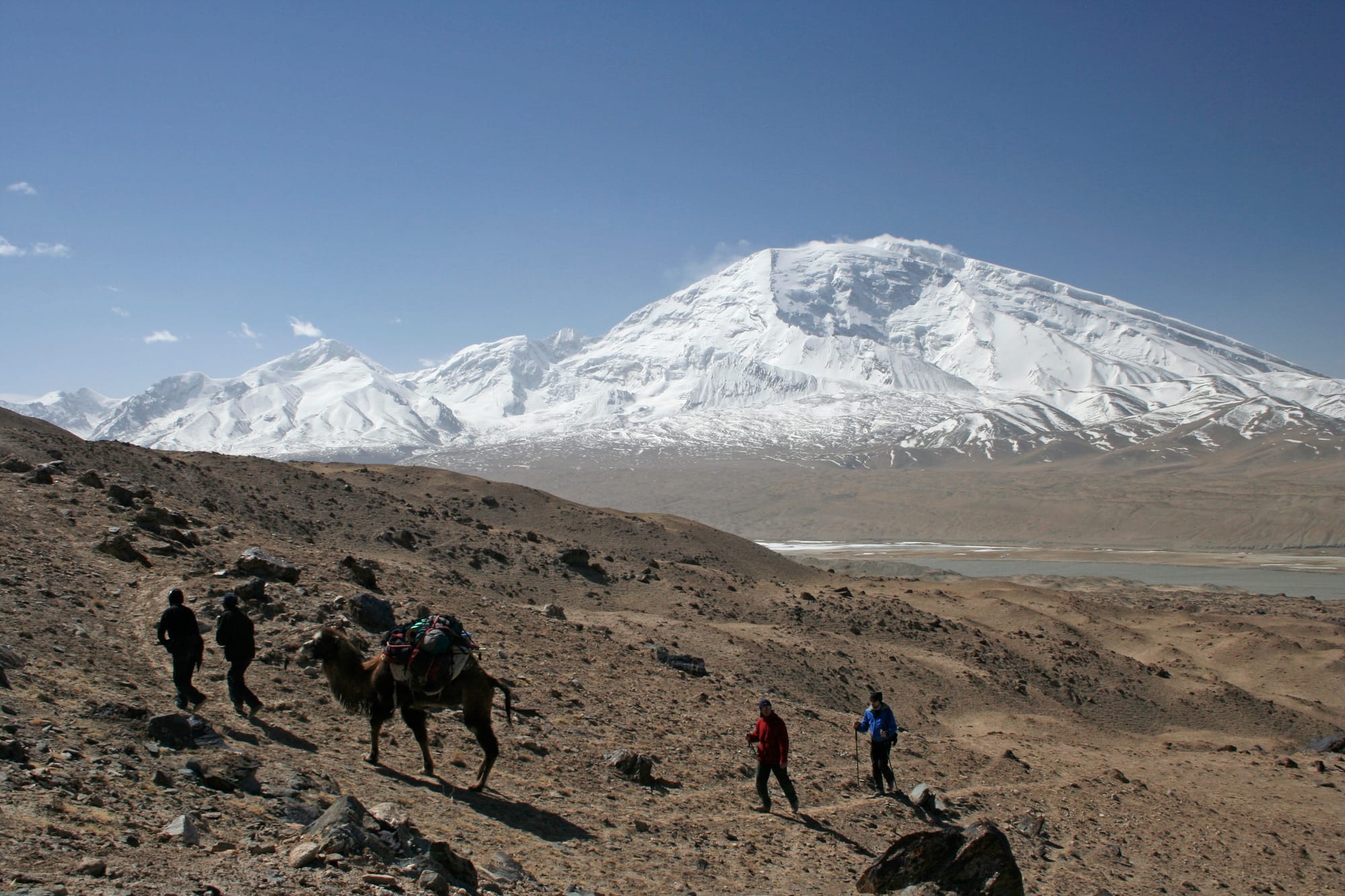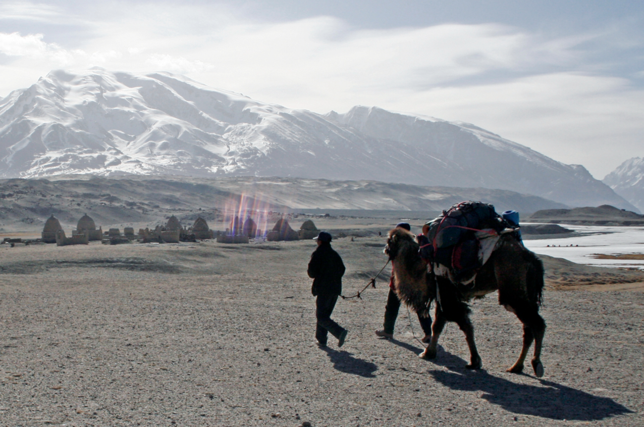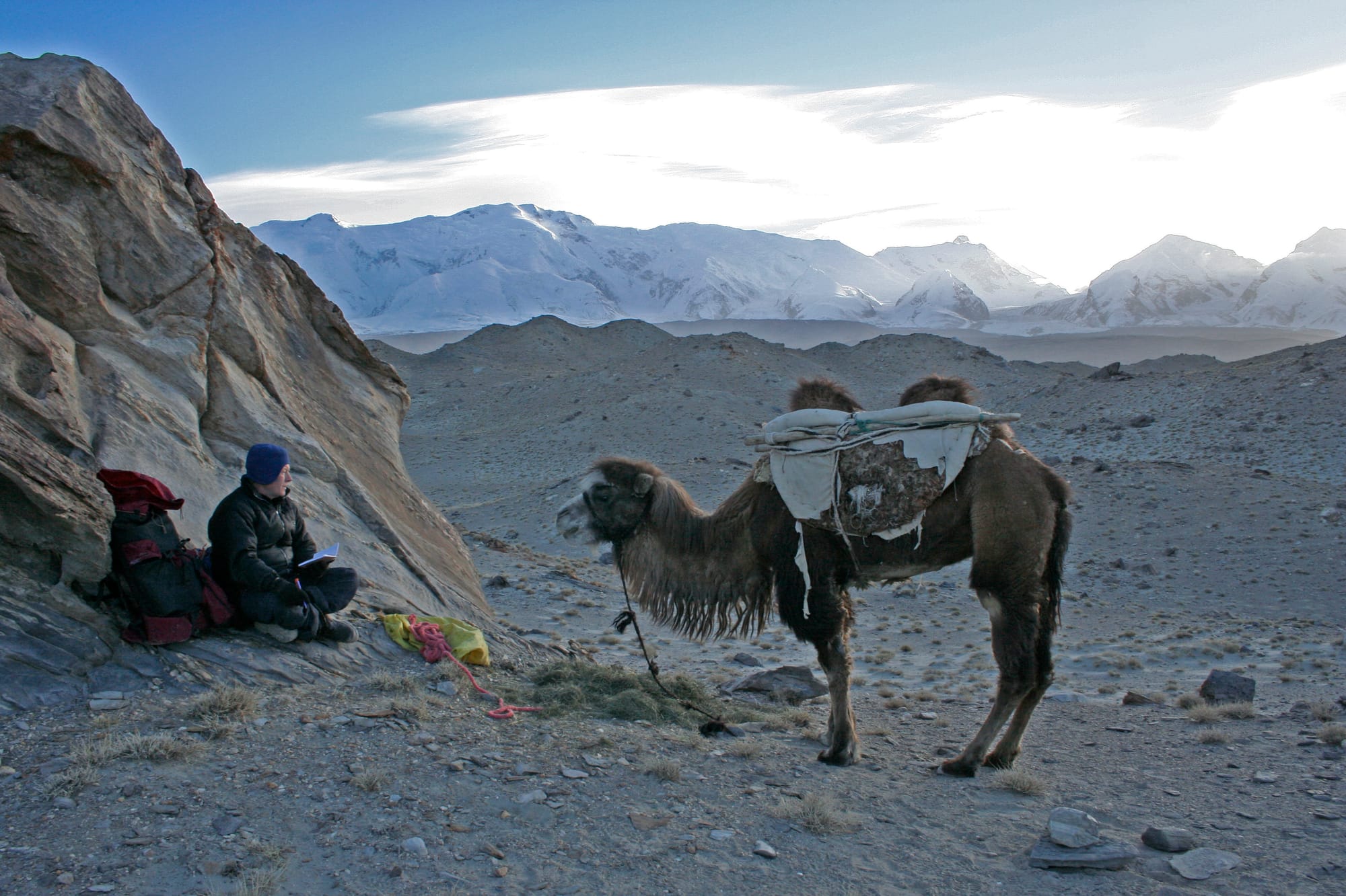 От озера Караколя мы поднимаемся к леднику Конгура. Навьюченный верблюд легко поднимает три наших больших рюкзака