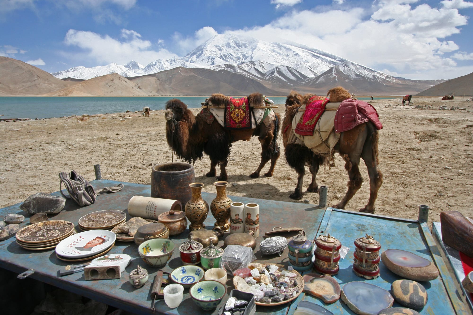 На Каракорумском шоссе мы впервые столкнулись с работой китайских КПП. На 1589 км шоссе всех пассажиров автобуса китайские военные регистрируют в толстых журналах на контрольно-пропускном пункте. Оплаты за это никакой не берется, но наши визы в паспорте проверяют. В подобные моменты всегда волнуешься, не развернут ли назад, но здесь и при всех дальнейших проверках китайской визы в паспорте было достаточно. За два часа мы поднялись от Кашгара на высоту 3500 м на озеро Караколь. Как только наш автобус остановился, нас буквально атаковали назойливые владельцы верблюдов и продавцы сувениров. Кроме этого, служащие с турбазы заставили оплатить входные билеты по 50 юаней на территорию особой туристической зоны Каракольского озера. Здесь имеется туристическая база (цена на проживание в юрте оказалась одной из самых высоких на нашем маршруте – 400 юаней за юрту, такой большой стоимости мы больше нигде не встречали). Питание здесь, в высотном лагере для туристов, не из дешевых, и обходится нам по 20 юаней за обычный лагман (вермишель с мясом), обычная его стоимость на равнине составляет 6–8 юаней. Пока мои друзья заказывают обед, я знакомлюсь с ассортиментом предлагаемых сувениров. Мое внимание привлекает ожерелье из натурального необработанного коралла с очень крупными камнями. Таких прекрасных камней я даже не видел у буряток, которые любят украшать свои женские наряды подобными коралловыми бусами. Стартовая стоимость ожерелья 200 юаней, сторговываюсь – за 50.